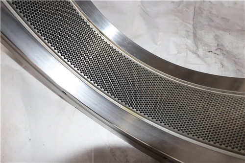 環(huán)模進(jìn)料口孔壁光潔度高,減少物料進(jìn)入??椎淖枇?,有利于物料通過提高制粒產(chǎn)量:環(huán)模進(jìn)料口孔角度均勻一致,確保環(huán)模出料整齊度好。